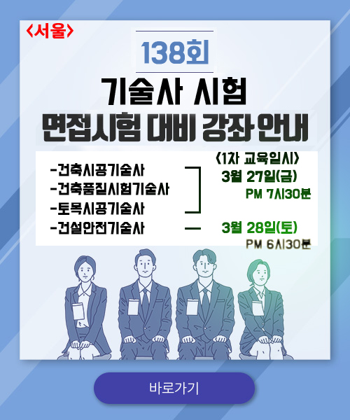 건축시공기술사, 토목시공기술사, 건축품질시험기술사 : 3월 27일 금요일 7시 30분