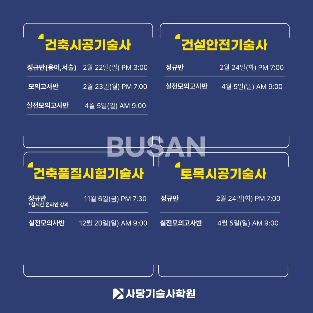 [공지] [전체]139회 대비 부산 사당건축토목학원 개강일정 안내(2월 22일 일요일 개강)